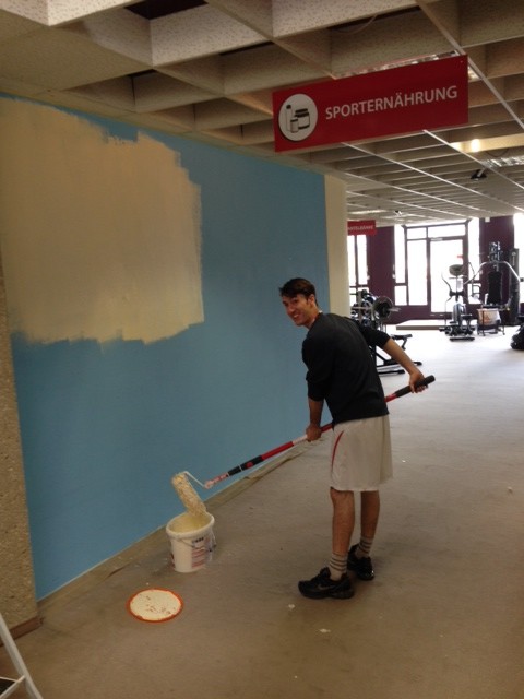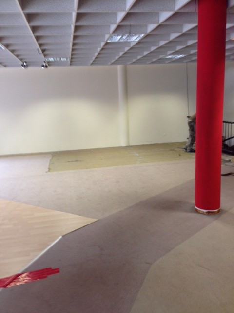 Die leere Ausstellungsfläche wurde dann prompt auch ausgenutzt, um dem ganzen Raum eine neue Farbe zu verpassen. Also wurde der ganze Laden einmal von innen neu gestrichen. Nun waren die Bodenverleger an der Reihe. Während der Boden neu verlegt wurde, haben wir nebenan in der angemieteten Ladenfläche weiterhin die Kunden beraten.