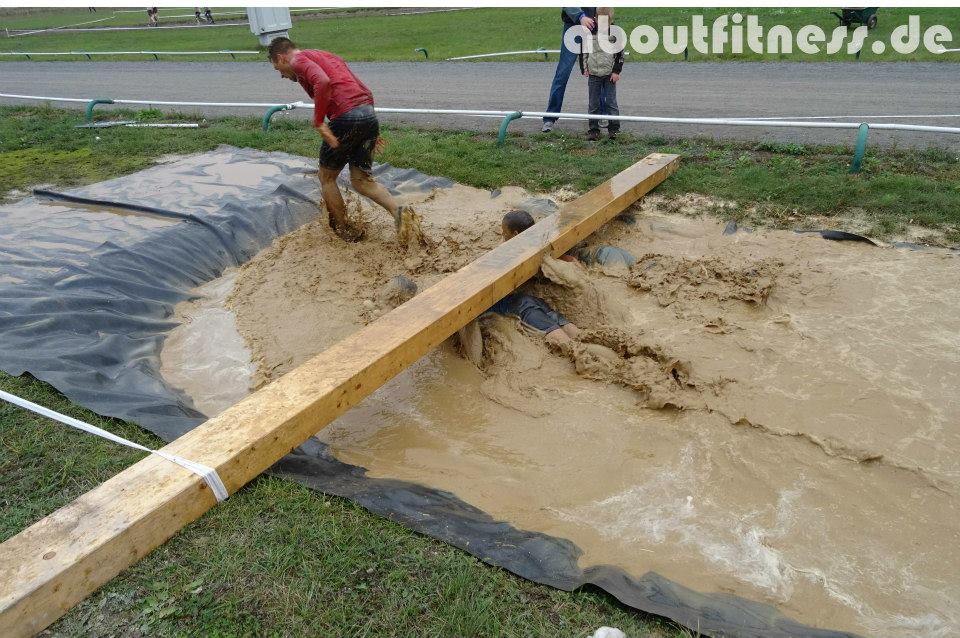 - Als ob das Kriechen im Schlamm nicht genug wäre…eine Regendusche gibt es auch noch