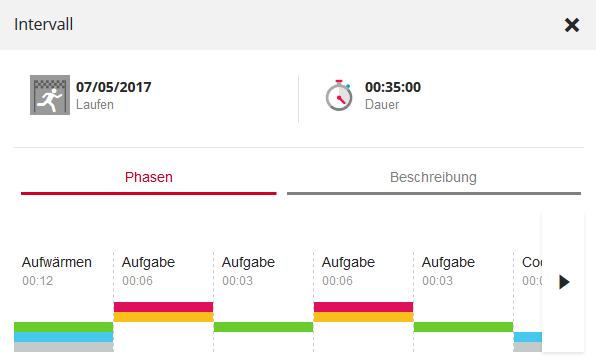Die Erstellung eines individuellen Plans im System ist dann denkbar einfach. Jede Trainingseinheit besteht aus Warm-Up-, Trainings- und Abwärm-Phase.