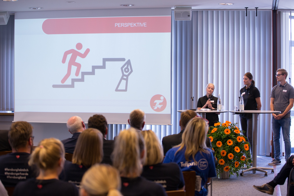 Die Schilderungen haben die Jury überzeugt, somit starteten die Planungen für die Finalrunde. Hier erhielt jeder Ausbildungsbetrieb 5 Minuten Zeit, die Jury und alle anwesenden Mitbewerber von seinem Ausbildungskonzept zu überzeugen.