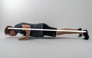 - Der Körper bleibt gestreckt und steht unter Spannung. Kopf, Schultern, Hüfte, Knie und Füße bilden eine gerade Linie. Gesäß und Knie dürfen während der Übung nicht durchhängen.
