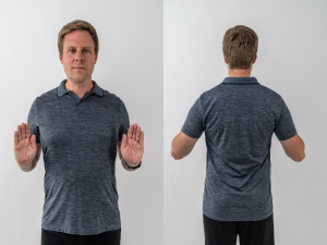 Die optimale Handposition beim Liegestütz Platziert Eure Hände minimal breiter als schulterbreit auf dem Boden. Die Finger zeigen dabei gerade nach vorne.
